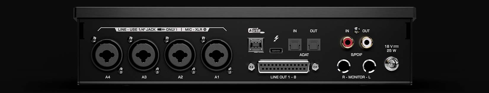4 x 1/4" TS Mic/Line/Hi-Z Input |
