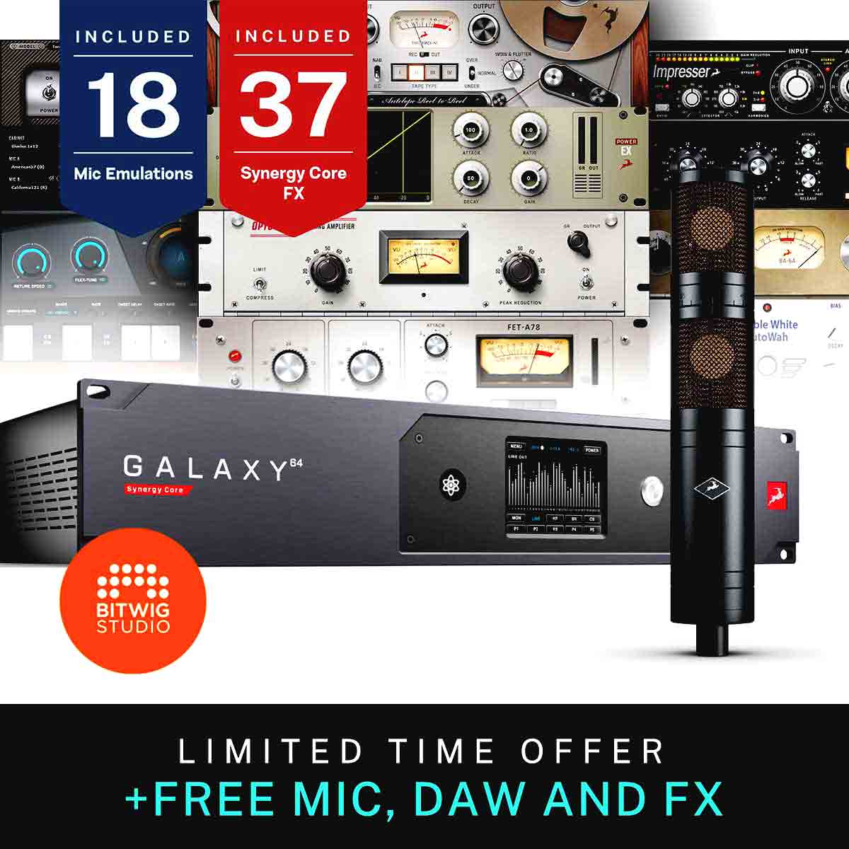 Galaxy 64 Synergy Core bao gồm một thư viện khổng lồ có thể mở rộng gồm 36 effect thời gian thực. Nó phần lớn bao gồm các mô phỏng phần mềm của thiết bị analog cổ điển được tìm thấy trong các phòng thu âm nổi tiếng thế giới. Bộ sưu tập không thiếu sự đa dạng nên anh em sẽ dễ dàng tìm thấy hàng hiếm có như auto-wah, Danish master-grade Comp và American-design EQs.