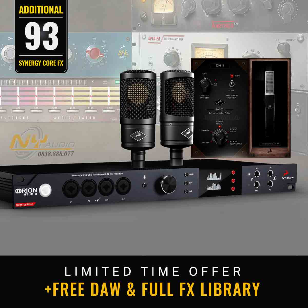 Bộ FPGA đi kèm của Antelope cung cấp các mô phỏng tại chỗ của bộ xử lý cổ điển. Làm ngọt các bản nhạc với mô phỏng Pultec EQ, làm cho giọng hát tỏa sáng với mẫu 1073 EQ được thiết kế từ sự cộng tác của BAE, thêm sức sống cho trống và guitar với plug-in VEQ-55A, đồng thời sử dụng các mô phỏng cabinet và bộ guitar preamp kiểu classic lẫn hiện đại để tạo ra nhiều tông màu hơn cho giai điệu của anh em. Tất cả các bộ xử lý hiệu ứng này có thể được khởi tạo trên bất kỳ track đầu vào và ra, hoặc DAW nào, biến Orion Studio thành một thiết bị hiệu ứng ảo cực kỳ mạnh mẽ.