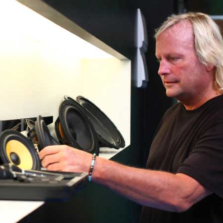 Nón loa bằng sợi thủy tinh được thiết kế bởi người sáng lập KRK và nhà thiết kế bậc thầy Keith R. Klawitter