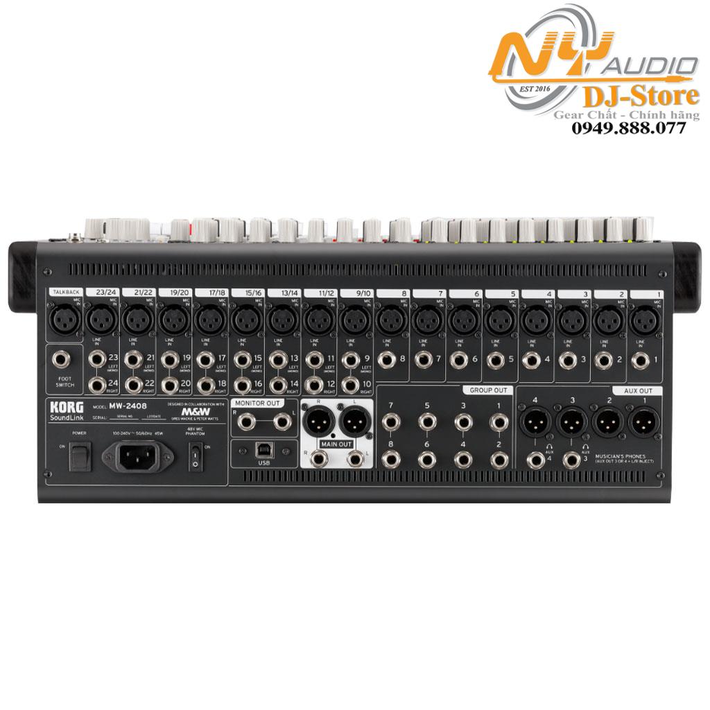 Korg SoundLink MW-2408 nổi bật với thiết kế 24 kênh, mang lại khả năng xử lý đa dạng cho các yêu cầu âm thanh khác nhau. Mixer này được trang bị cả đầu vào analog và digital, cho phép ae dễ dàng kết nối với nhiều thiết bị khác nhau. Điều này giúp tăng cường khả năng tương thích và linh hoạt trong việc xử lý tín hiệu.