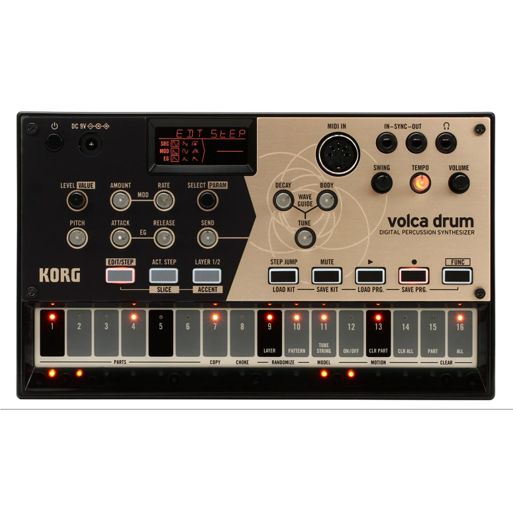 Korg Volca Drum đi kèm với một sequencer 16-step mạnh mẽ, giúp ae dễ dàng tạo ra các mẫu trống và nhịp điệu phức tạp. Sequencer này cho phép ae lập trình các mẫu âm thanh trống theo ý muốn, tạo ra các pattern đa dạng và phong phú. Ngoài ra, thiết bị còn hỗ trợ các tính năng như shuffle, swing và thêm các hiệu ứng mod, giúp ae tạo ra những giai điệu trống đầy sáng tạo và động.