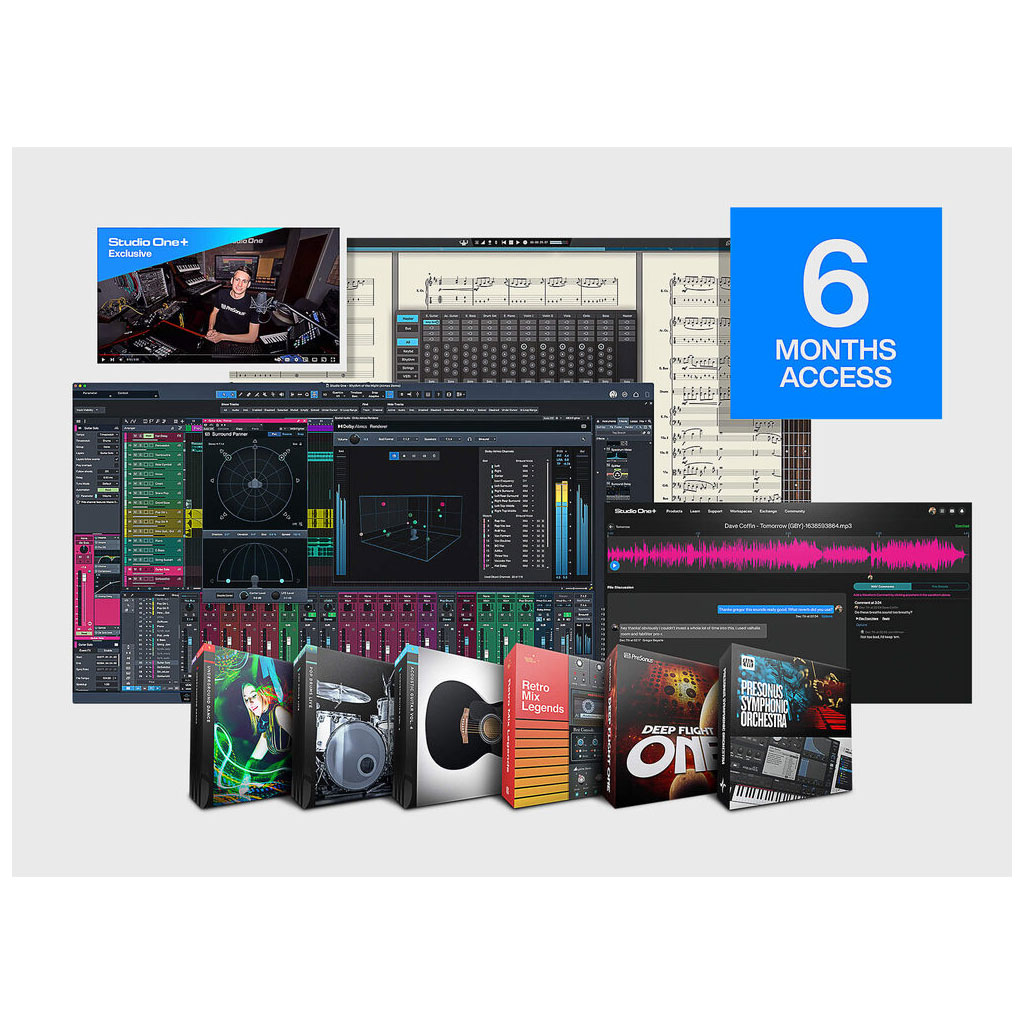 Studio One Pro DAW Recording Software Access Included – Bao gồm 6 tháng Studio One+ với quyền truy cập vào phần mềm ghi âm Studio One Pro DAW, các tiện ích mở rộng và nhiều tính năng khác.