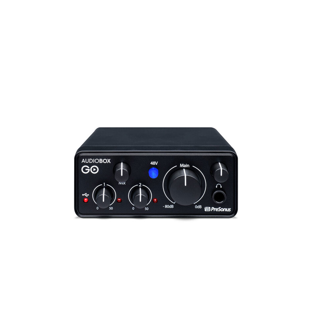 PreSonus AudioBox GO USB Audio Interface – Giao diện âm thanh USB siêu nhỏ gọn với sức mạnh bất ngờ dành cho biểu diễn và sản xuất âm nhạc di động.