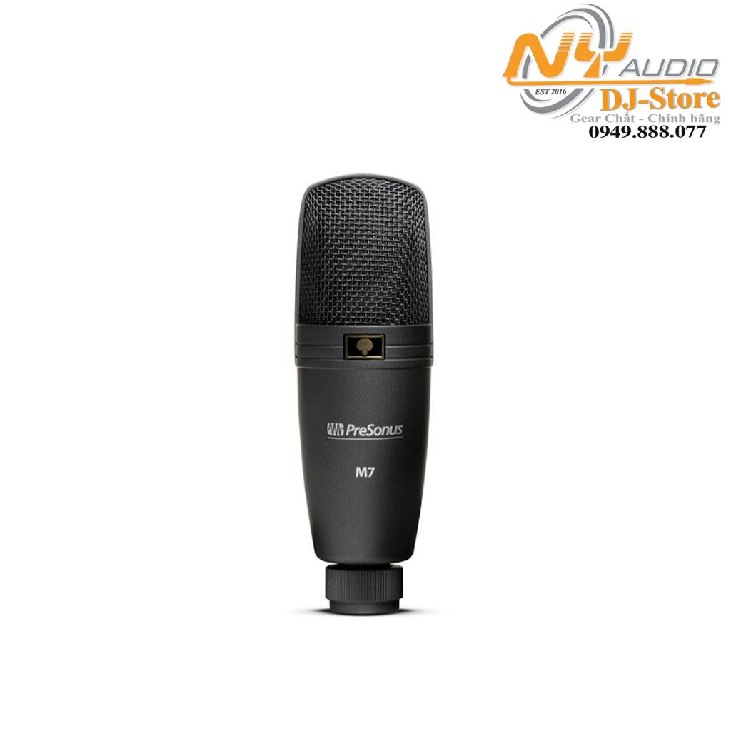 PreSonus M7 Microphone – Micro ngưng tụ cardioid đa năng với bộ chuyển đổi giá đỡ micro và màn chắn gió.
