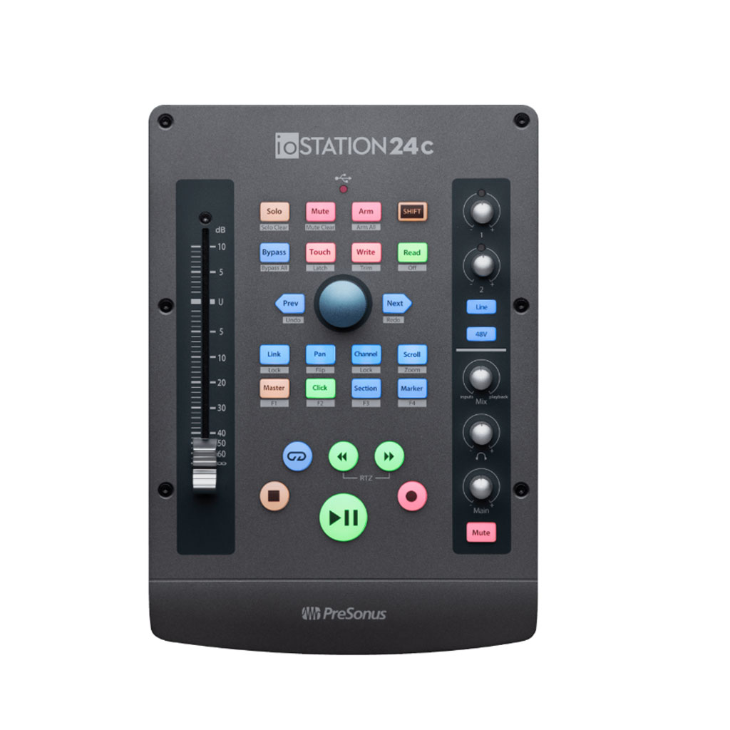 Không chỉ là một audio interface, ioStation 24C còn tích hợp bộ điều khiển DAW (Digital Audio Workstation) tiện lợi. Với các nút bấm, fader và vòng xoay trực quan, ae có thể dễ dàng điều chỉnh và kiểm soát các thông số âm thanh một cách chính xác. Điều này giúp tối ưu hóa quá trình làm việc, tiết kiệm thời gian và nâng cao hiệu suất sáng tạo.