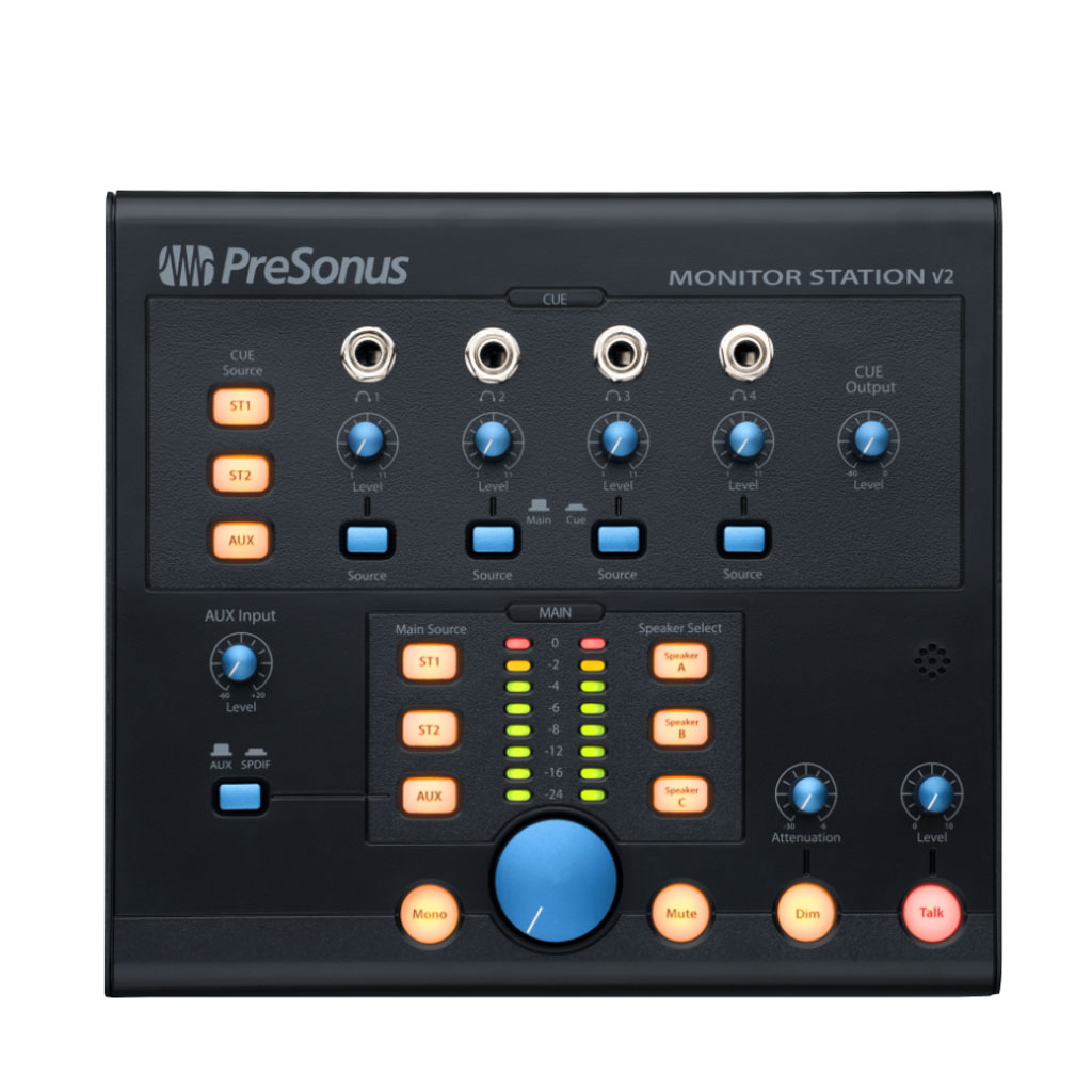 PreSonus Monitor Station V2 cho phép người dùng dễ dàng điều chỉnh âm lượng của ba nguồn âm thanh khác nhau và ba bộ loa, tất cả chỉ bằng một núm xoay chính. Điều này giúp ae có thể kiểm soát âm thanh từ nhiều nguồn một cách nhanh chóng và chính xác, giúp đảm bảo rằng âm thanh được pha trộn và cân chỉnh tốt nhất.